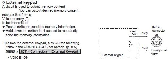 This is for newer Icom radios having a round mic connector and voice keyer function A couple websites showing how this sets up and works, pretty cool! The Foot Switch for PTT, plugs into the pigtail without the color band