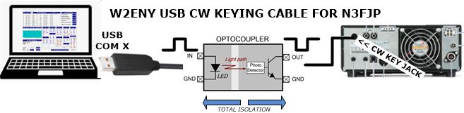 Each cable is wired with a 1/8" CW plug (also comes with 1/4" adapter) about 5 feet of cable between your computer USB and the radio's CW jack.